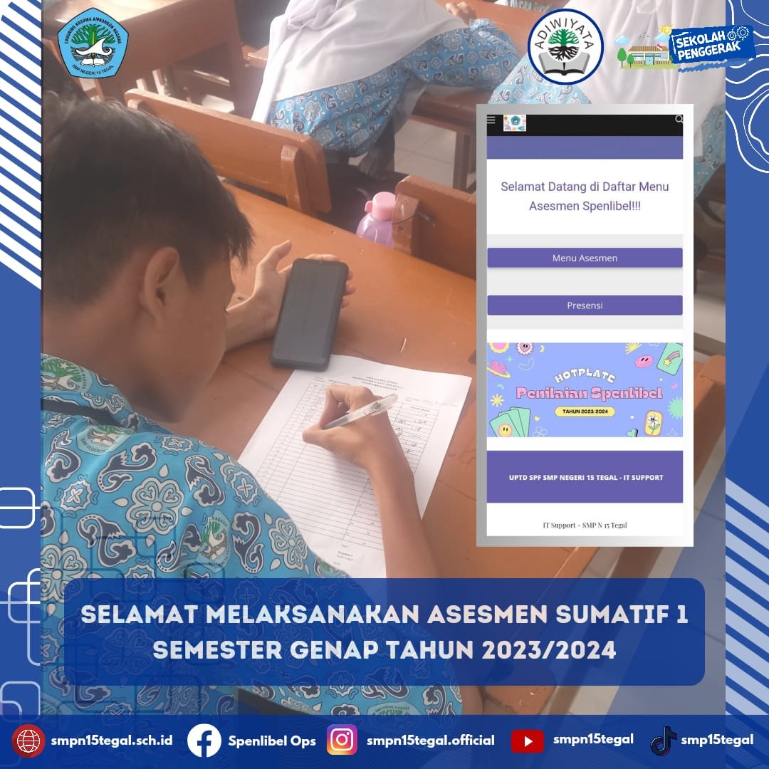 Pelaksanaan asesmen sumatif 1 dimulai tanggal 29 Januari - 3 Februari 2024. Kegiatan ini menggunakan media "HOT PLATE SPENLIBELS", dimana siswa mengerjakan asesmen sumatif secara online melalu gawai. Aplikasi "HOT PLATE SPENLIBELS" dirancang khusus oleh Tim IT SPENLIBELS sebagai media berbasis teknologi yang berisi soal-soal asesmen yang telah dibuat oleh guru mapel.